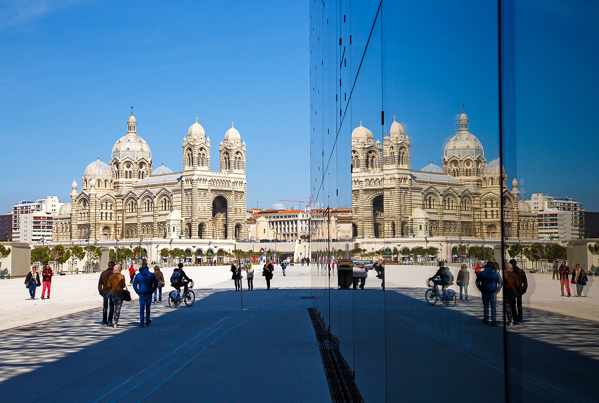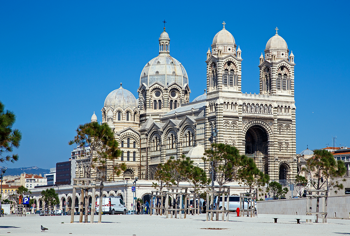 Bei der Wallfahrtskirche Notre-Dame de la Garde in Marseille hat man einen wundervolle Aussicht auf die Frioul-Inseln (französisch Archipel du Frioul) die vier Kilometer westlich liegen (hier am 26.03.2015).